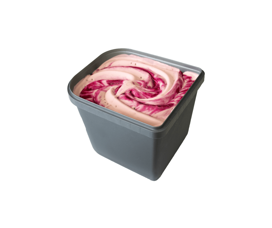 Bārbeļu plombīra saldējums ar bārbeļu garšas mērci